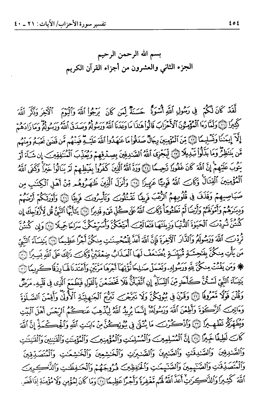 بسم الله الرحمن الرحيم الجزء الثاني والعشرون من أجزاء القرآن الكريم