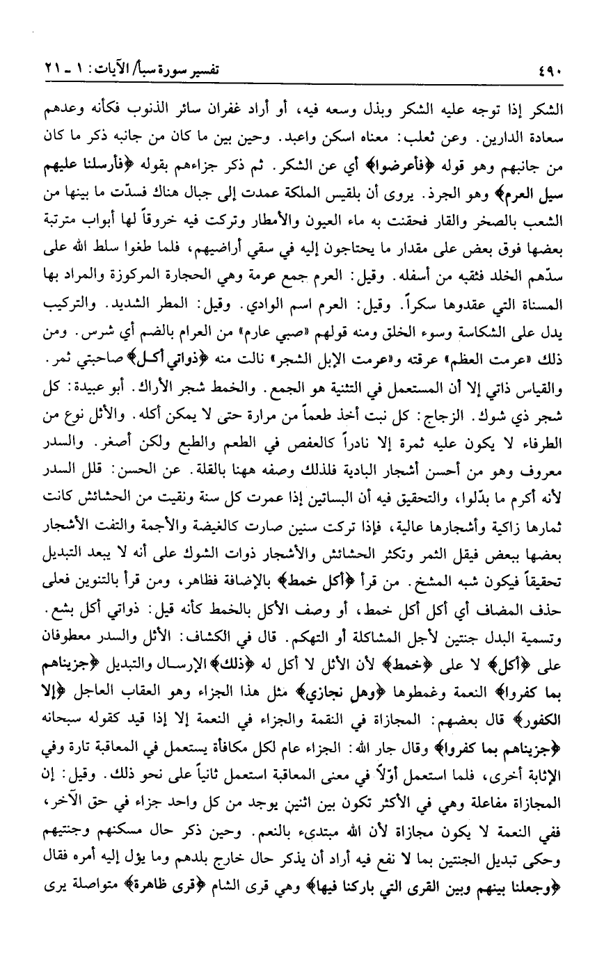الشكر إذا توجه عليه الشكر وبذل وسعه فيه، أو أراد غفران سائر الذنوب فكأنه وعدهم سعادة الدارين. وعن ثعلب: معناه اسكن واعبد. وحين بين ما كان من جانبه ذكر ما كان من جانبهم وهو قوله فَأَعْرَضُوا أي عن الشكر. ثم ذكر جزاءهم بقوله فَأَرْسَلْنا عَلَيْهِمْ سَيْلَ الْعَرِمِ وهو الجرذ.