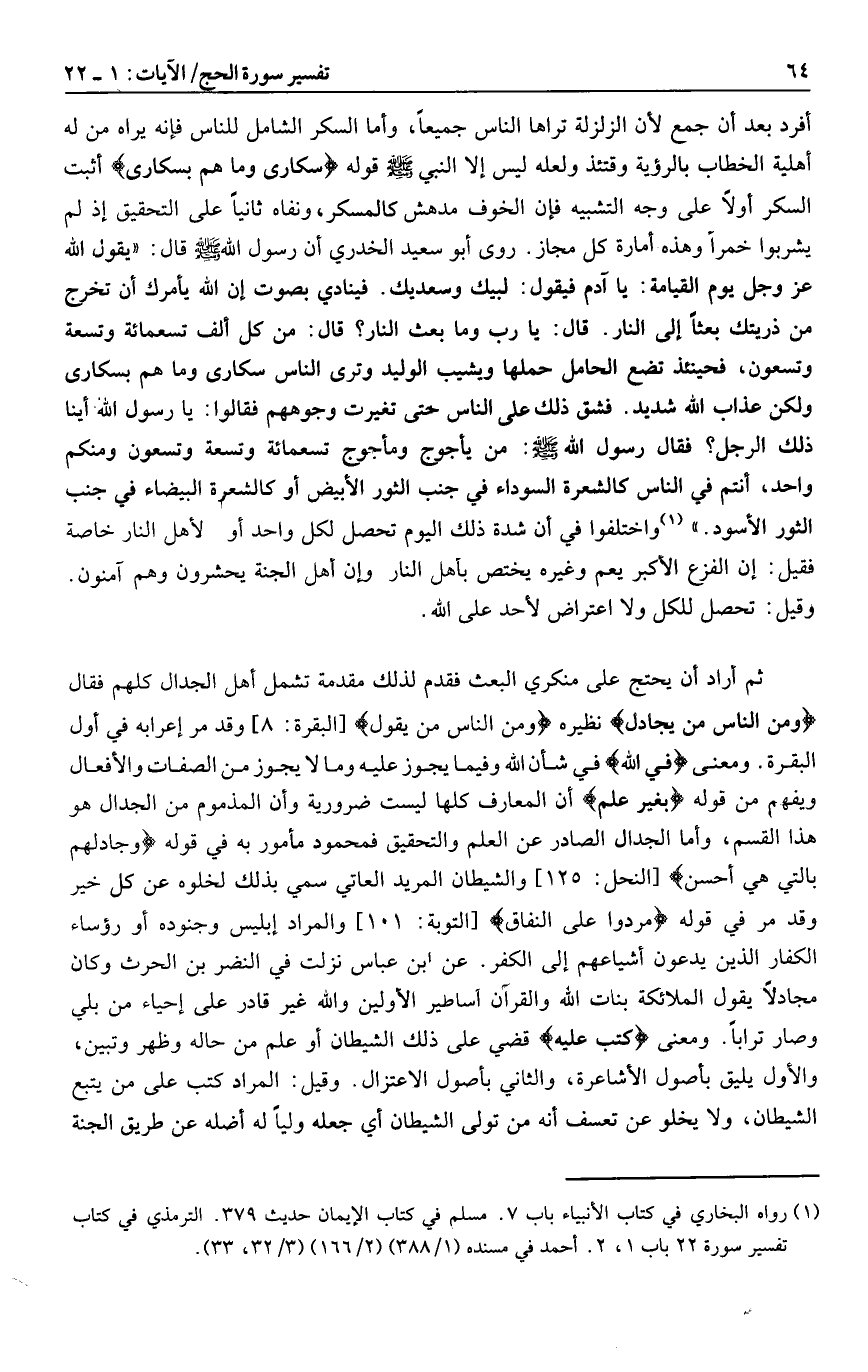 (1) رواه البخاري في كتاب الأنبياء باب 7. مسلم في كتاب الإيمان حديث 379. الترمذي في كتاب تفسير سورة 22 باب 1، 2. أحمد في مسنده (1/ 388) (2/ 166) (3/ 32، 33) .