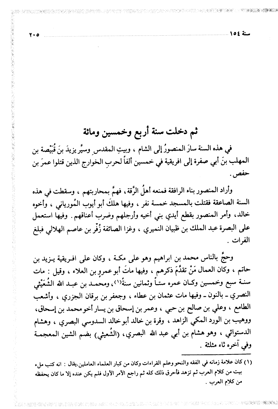 $ ثم دخلت سنة أربع وخمسين ومائة $