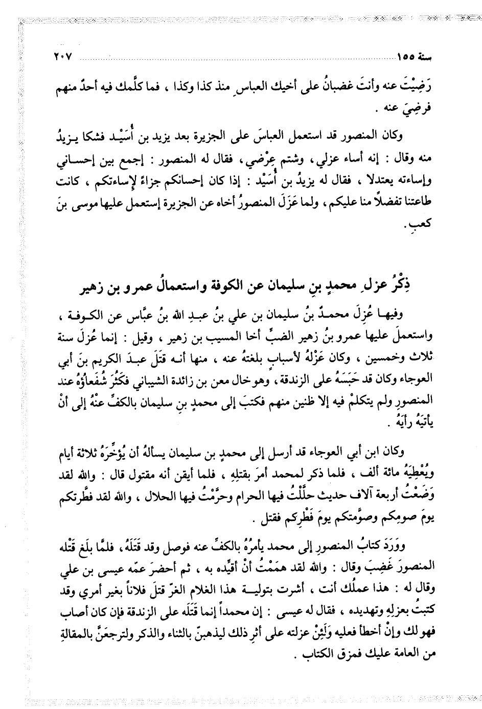 $ ذكر عزل محمد بن سليمان عن الكوفة واستعمال عمرو بن زهير $