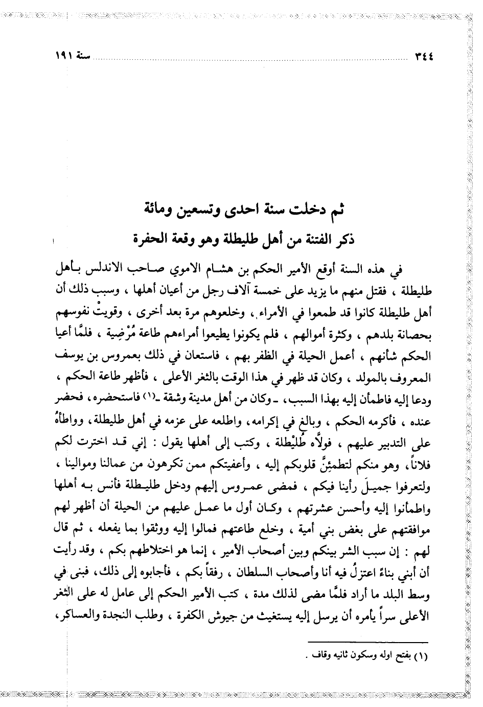 $ ذكر الفتنة من أهل طليطلة وهو وقعة الحفرة $