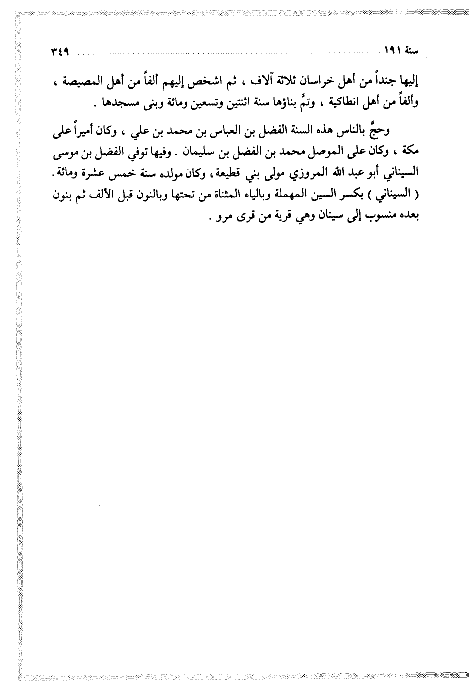 وفيها توفي الفضل بن موسى السيناني أبو عبد الله الرزوي مولى بني قطيعة وكان مولده سنة خمس عشرة ومائة