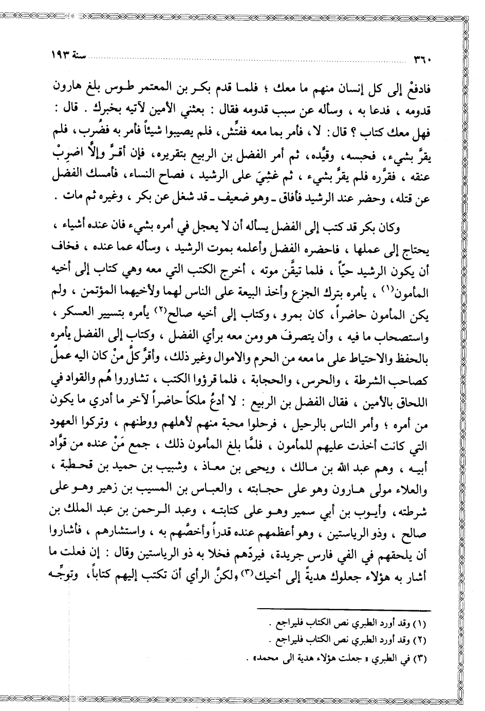 فادفع إلى كل إنسان منهم ما معك فلما قدمك بكر بن المعتمر طوس بلغ هارون قدومه فدعا به وسأله عن سبب قدومه فقال بعثني الأمين لآتيه بخبرك