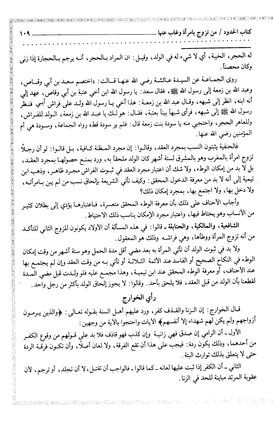 روى الجماعة عن السيدة عائشة رضي الله عنها قالت: (اختصم سعد بن أبي وقاص، وعبد الله بن زمعة إلى رسول الله صلى الله عليه وسلم، فقال سعد: يا رسول الله أبن أخي عتبة بن أبي وقاس، عهد إلي أنه ابنه، اظهر إلى شبهه، وقال عبد الله بن زمعة: هذا أخي يا رسول الله ولج على فارش أبي فنظر رسول الله صلى الله عليه وسلم إلى شبهه، فرأى شبهاً بيناً بعتبة، فقال: هو لك يا عبد الله بن زمعة، الولد للفراش، وللعاهر الحجر، واحتجبي منه يا سودة بنت زمعة قال: لم ير سودة قط) رواه الجماعة، وسودة هي أم المؤمنين رضي الله عنها.