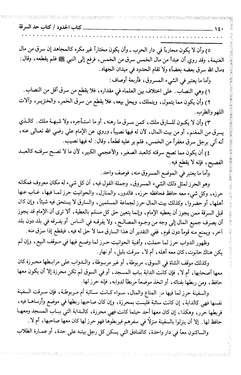 وأما ما يعتبر في الشيء المسروق، فأربعة أوصاف: