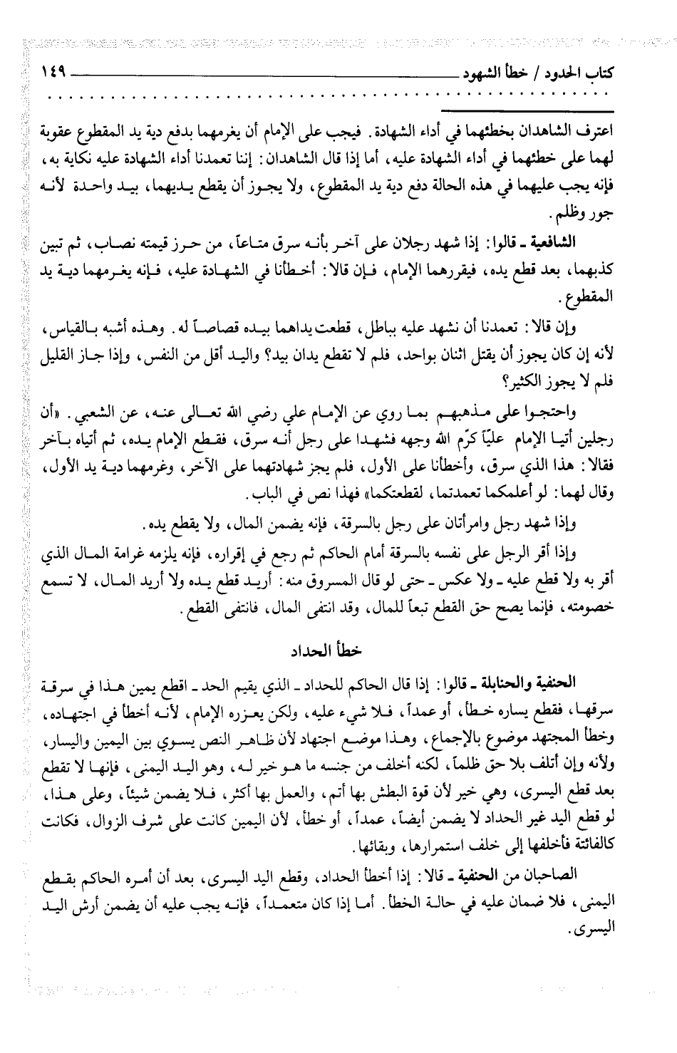 اعترف الشاهدان بخطئهما في أداي الشهادة. فيجب على الإمام أن يغرمهما بدفع دية يد المقوع عقوبة لهما على خطئهما في أداء الشهادة عليه، أما إذا قال الشاهدان: إننا تعمدنا اداء الشهادة عليه نكاية به، فإنه يجب عليهما في هذه الحالة دفع دية يد المقطوع، ولا يجوز أن يقطع يديهما، بيد واحدة لنه جور وظلم. الشافعية - قالوا: إذا شهد رجلان على آخر بأنه سرق متاعاً من حرز قيمته نصاب، ثم تبين كذبهما، بعد قطع يده، فيقررهما الإمام، فإن قالا: أخطأنا في الشهادة عليه، فإنه يغرمهما دية يد المقطوع. وإن قالا: تعمدنا أن نشهد عليه بباطل، قطعت يداهما بيده قصاصاً له. وهذه أشبه بالقياس، لأنه إن كان يجوز أن يقتل اثنان بواحد، فلم لا تقطع يدان بيد؟ واليد أقل من النفس، وإذا جاز القليل فلم لا يجوز الكثير؟ واحتجوا على مذهبهم بما روي عن الإمام علي رضي الله تعالى عنه، عن الشعبي. (أن رجلين أتيا الإمام علياً كرم الله وجهه فشهدا على رجل أنه سرق، فقطع الإمام يده، ثم أتياه بآخر فقالا: هذا الذي سرق، وأخطأنا على الول، فلم يجز شهادتهما على الآخر، وغرمهما دية يد الول، وقال لهما: لو أعلمكما تعمدتما، لقطعتكما) فهذا نص في الباب. وإذا شهد رجل وامرأتان على رجل بالسرقة، فإنه يضمن المال، ولا يقطع يده. وإذا أقر الرجل على نفسه بالسرقة أمام الحاكم ثم رجع في إقراره، فإنه يلزمه غرامة المال الذي أقر به ولا قطع عليه - ولا عكس - حتى لو قال المسروق منه، أريد قطع يده ولا أريد المال، لا تسمع خصومته، فإنما يصح حق القطع تبعاً للمال، وقد انتفى المال، فانتفى القطع.