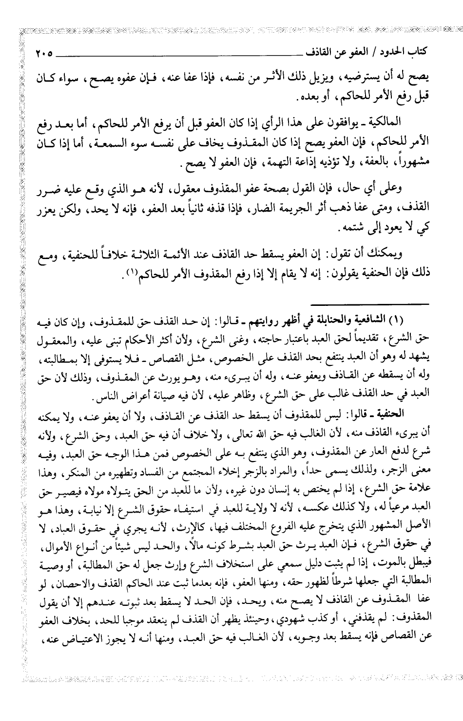 ويمكنك أن تقول: إن العفو يسقط حد القاذف عند الأئمة الثلاثة خلافاً للحنفية، ومع ذلك فإن الحنفية يقولون: أنه لا يقام إلا إذا رفع المقذوف الأمر للحاكم (¬1)
