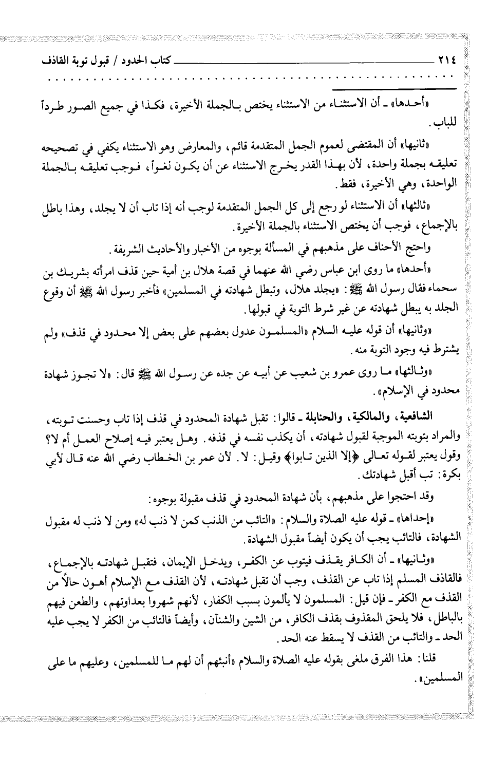 وقد احتجوا على مذهبهم، بأن شهادة المحدود في قذف مقبولة بوجوه: