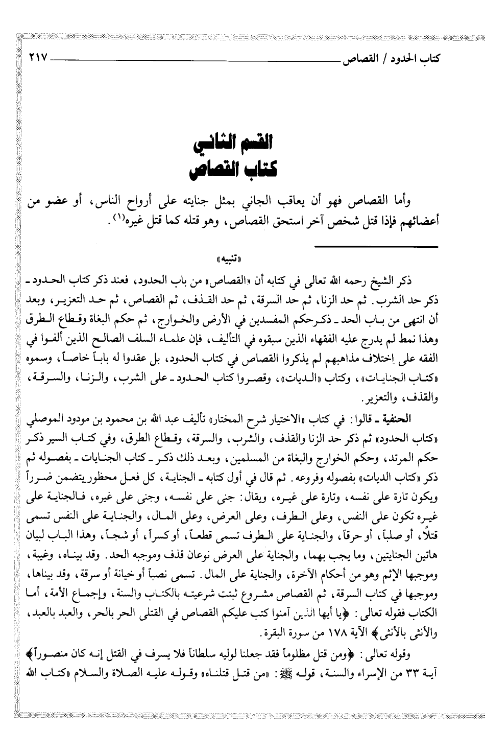 القسم الثاني كتاب القصاص.