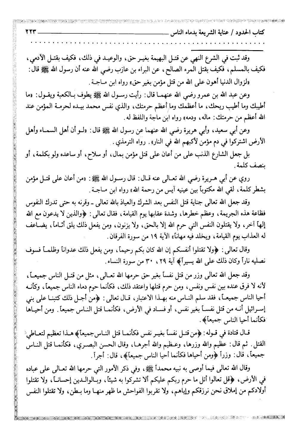 بل جعل الشارع الذنب على من أعان على قتل مؤمن بمال، أو سلاح، أو ساعده ولو بكلمة، أو بنصف كلمة.