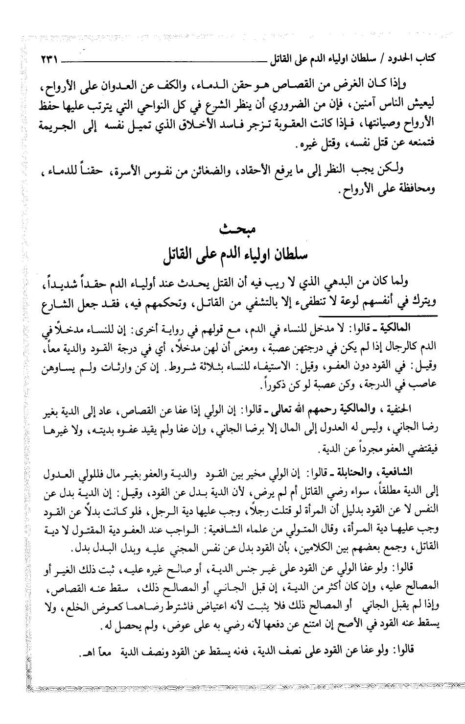 -ولما كان من البدهي الذي لا ريب فيه أن القتل يحدث عند أولياء الدم حقداً شديداً، ويترك في أنفسهم لوعة لا تنطفىء إلا بالتشفي من القاتل، وتحكمهم فيه، فقد جعل الشارع