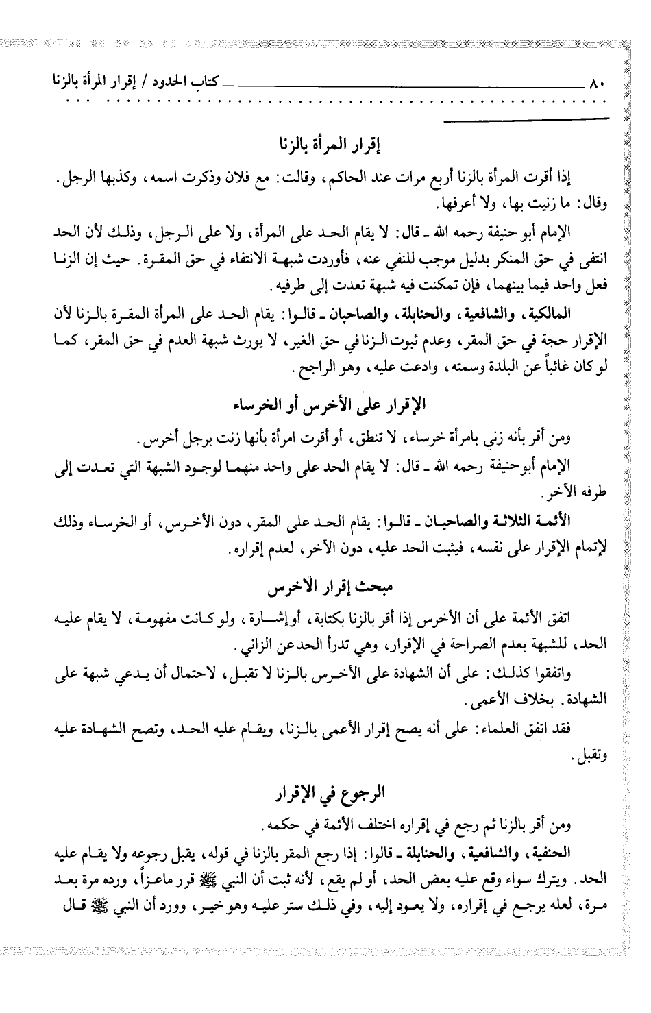 ومن أقر بأنه زنى بامرأة خرساء، لا تنطق، أو أقرت بأنها زنت برجل أخرس.