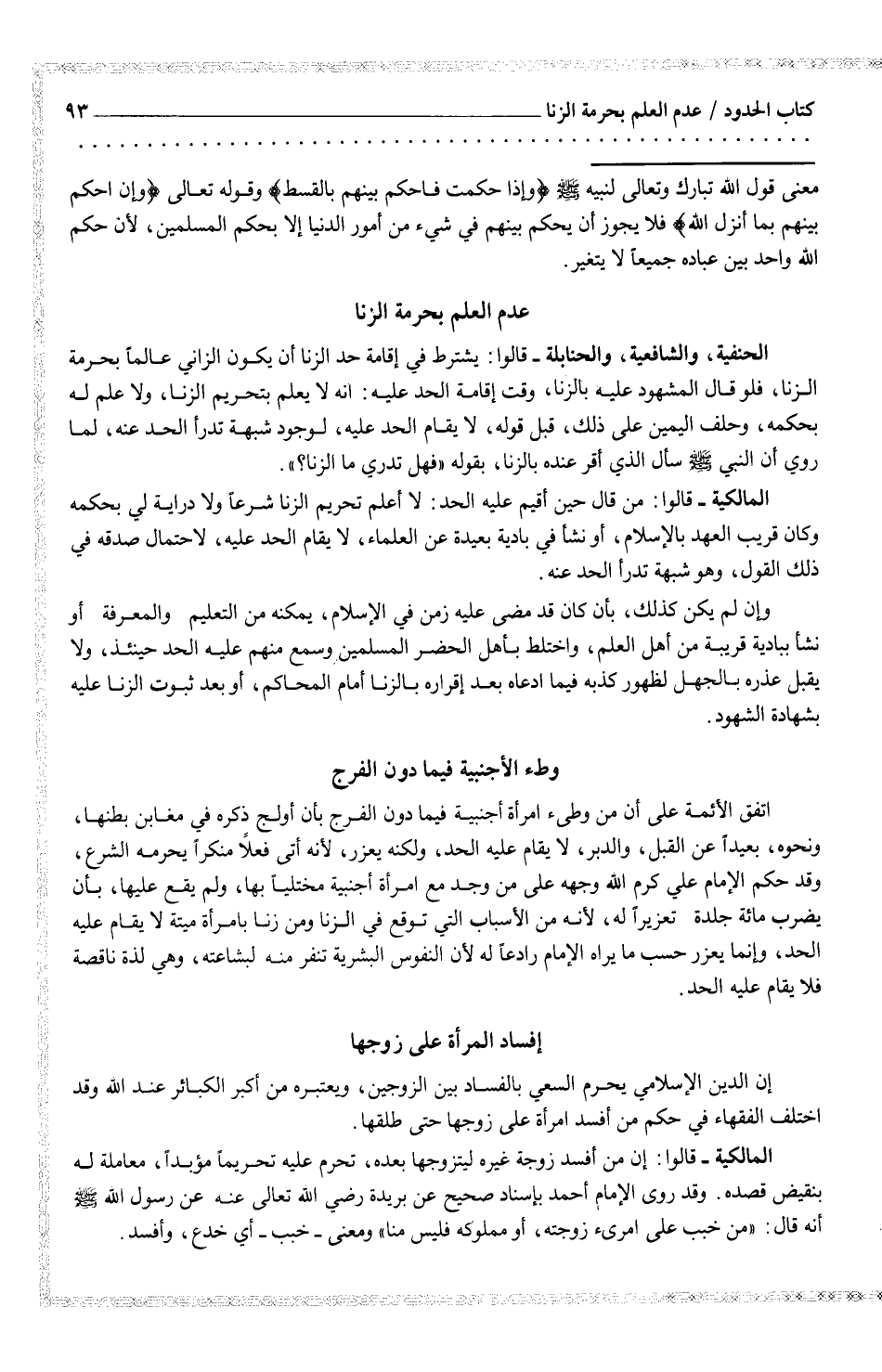 وإن لم يكن كذلك، بأن كان قد مضى عليه زمن في الإسلام، يمكنه من التعليم والمعرفة أو نشأ ببادية قريبة من أهل العلم، واختلط بأهل الحضر المسلمين وسمع منهم عليه الحد حينئذ، ولا يقبل عذره بالجهل لظهور كذبه فيما ادعاه بعد إقراره بالزنا أمام المحاكم، أو بعد ثبوت الزنا عليه بشهادة الشهود.