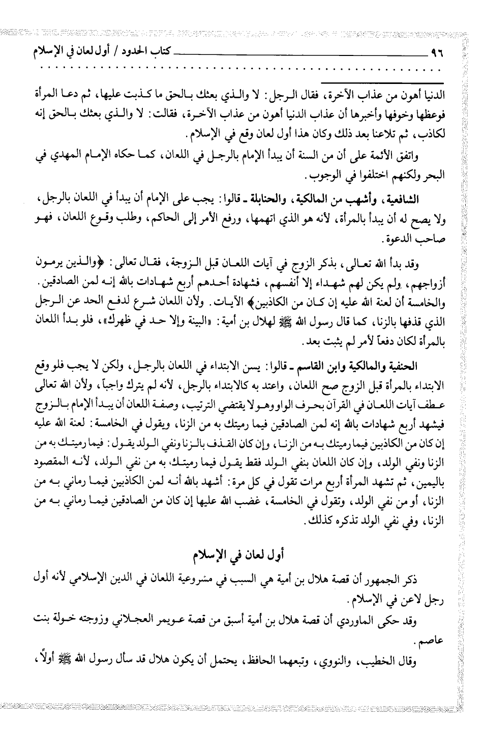 ذكر الجمهور أن قصة هلال بن أمية هي السبب في مشروعية اللعان في الدين الإسلامي لأنه أول رجل لاعن في الإسلام.