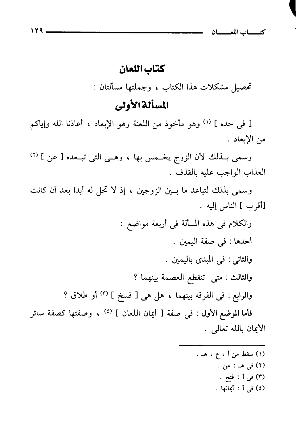 [في حده] (¬1) وهو مأخوذ من اللعنة وهو الإبعاد، أعاذنا الله وإياكم من الإبعاد.