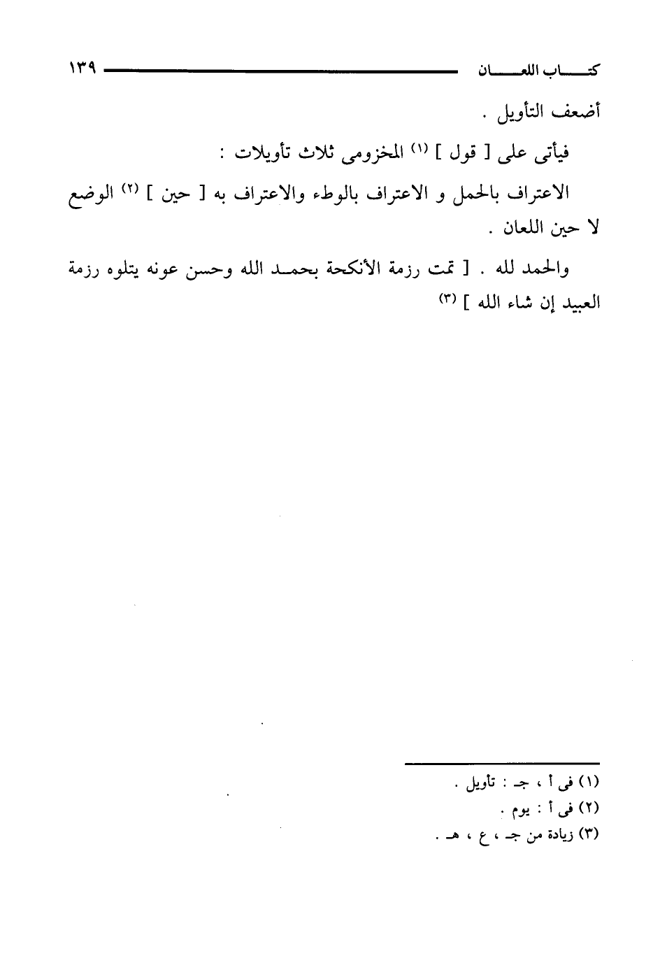 فيأتى على [قول] (¬1) المخزومى ثلاث تأويلات: