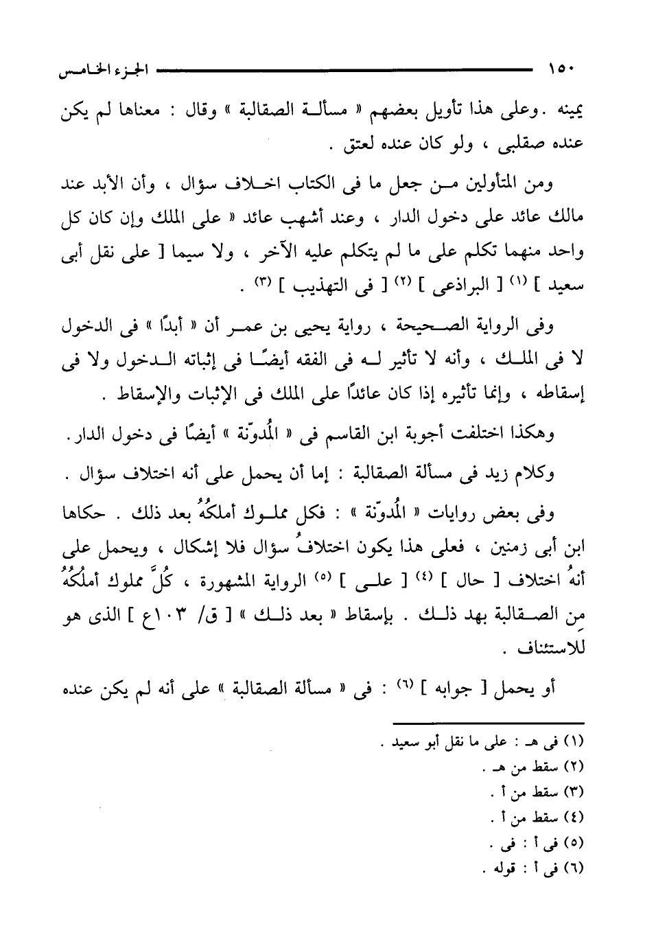 وكلام زيد في مسألة الصقالبة: إما أن يحمل على أنه اختلاف سؤال.