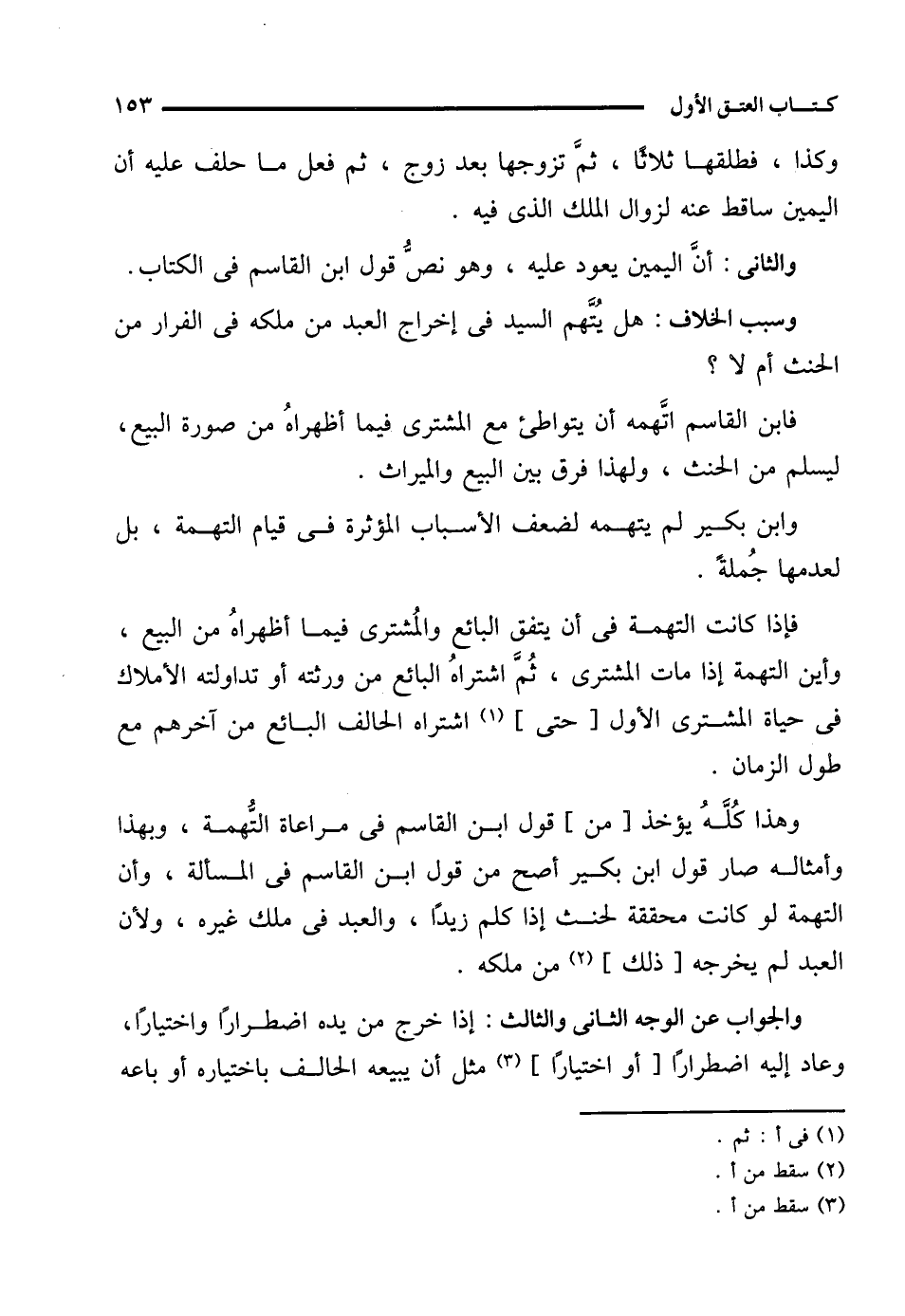 وسبب الخلاف: هل يُتَّهم السيد في إخراج العبد من ملكه في الفرار من الحنث أم لا؟
