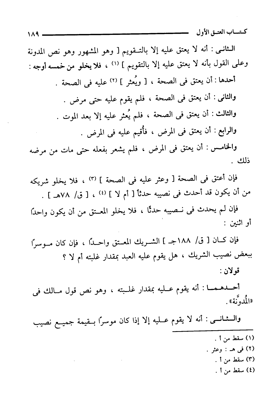 والرابع: أن يعتق في المرض، فأُقيم عليه فى المرض.