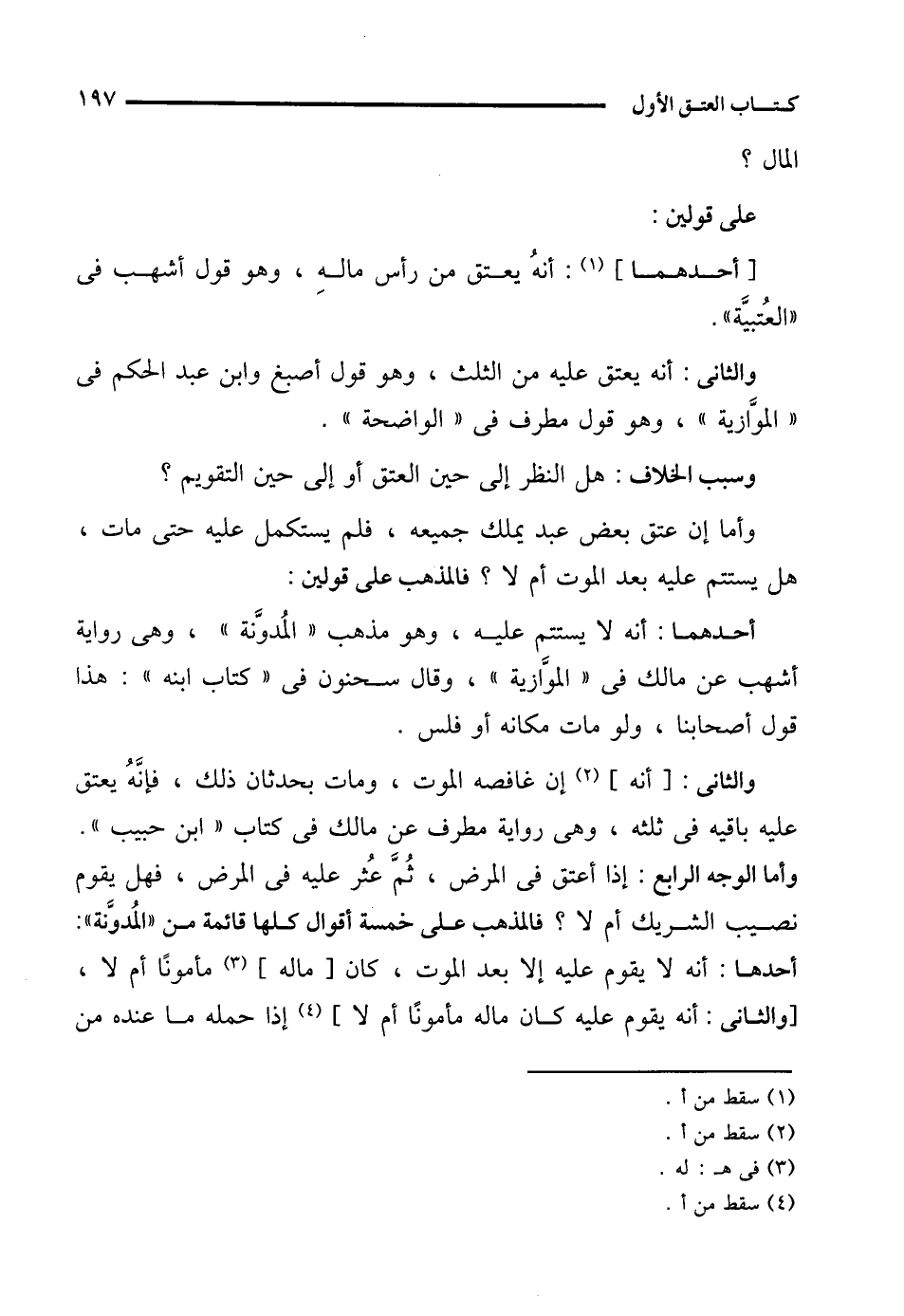 والثانى: أنه يعتق عليه من الثلث، وهو قول أصبغ وابن عبد الحكم في "الموَّازية"، وهو قول مطرف في "الواضحة".