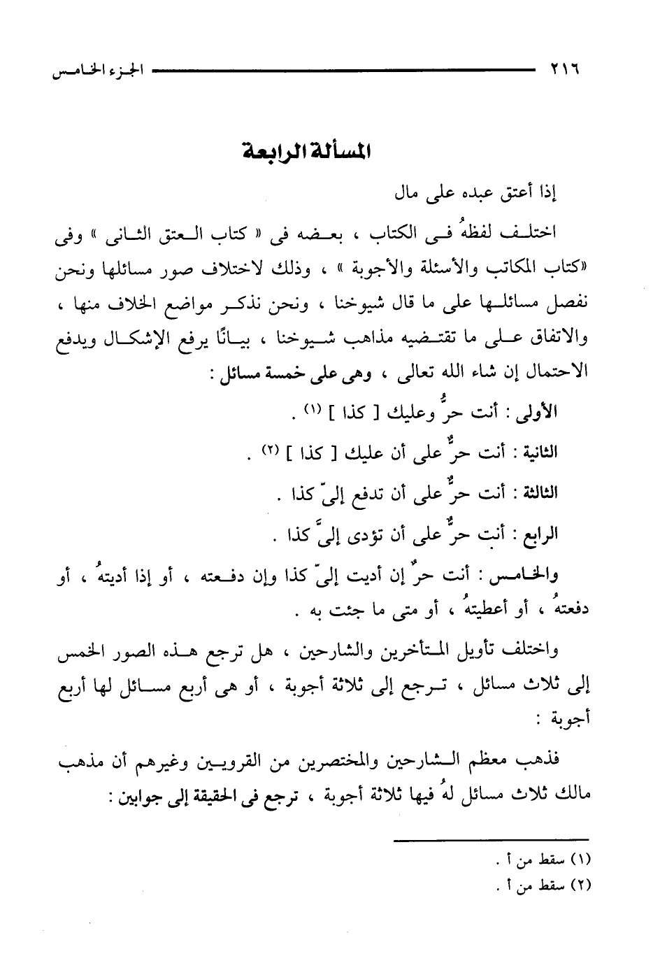 المسألة الرابعة