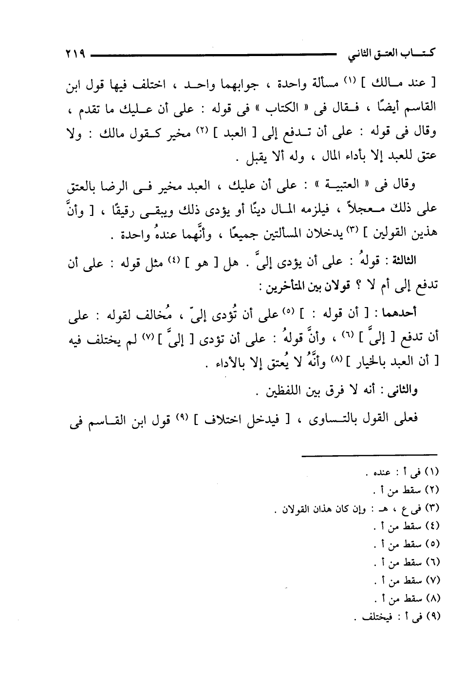 [عند مالك] (¬1) مسألة واحدة، جوابهما واحد، اختلف فيها قول ابن القاسم أيضًا، فقال في "الكتاب" في قوله: على أن عليك ما تقدم، وقال في قوله: على أن تدفع إلى [العبد] (¬2) مخير كقول مالك: ولا عتق للعبد إلا بأداء المال، وله ألا يقبل.