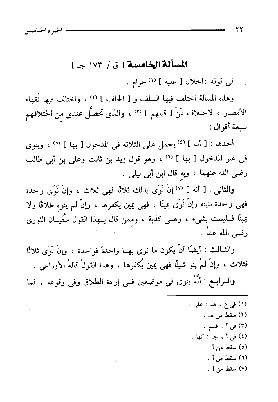 والثانى: [أنه] (¬7) إنْ نَوَى بذلك ثلاثًا فهي ثلاث، وإنْ نَوَى واحدة فهي واحدة بنيته وإنْ نَوَى يمينًا، فهي يمين يكفرها، وإنْ لم ينوهِ طلاقًا ولا يمينًا فليست بشىء، وهي كذبة، ومِمن قال بهذا القول سُفيان الثورى رضي الله عنهُ.