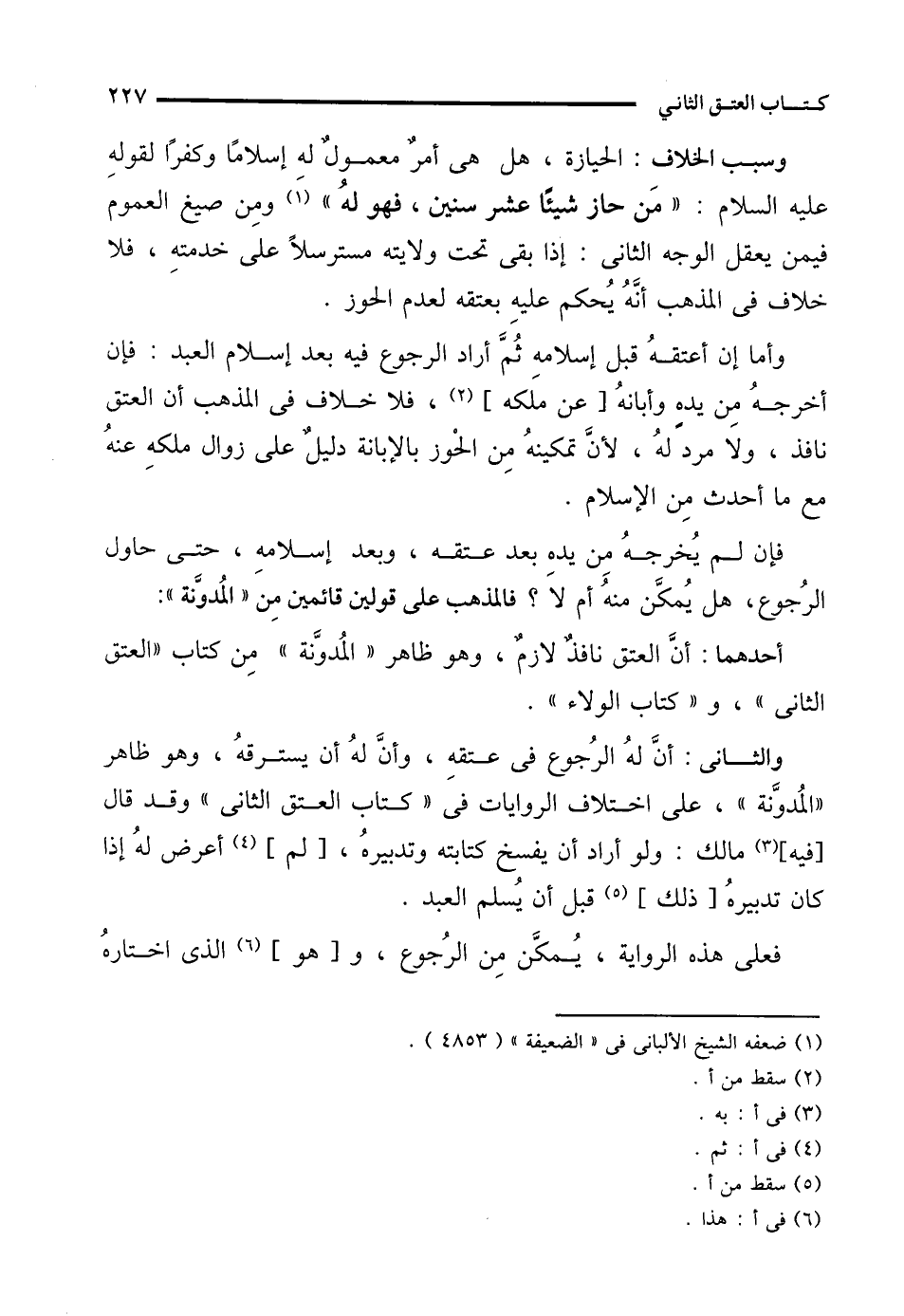 والثانى: أنَّ لهُ الرُجوع في عتقهِ، وأنَّ لهُ أن يسترقهُ، وهو ظاهر "المُدوَّنة"، على اختلاف الروايات في "كتاب العتق الثاني" وقد قال [فيه] (¬3) مالك: ولو أراد أن يفسخ كتابته وتدبيرهُ، [لم] (¬4) أعرض لهُ إذا كان تدبيرهُ [ذلك] (¬5) قبل أن يُسلم العبد.