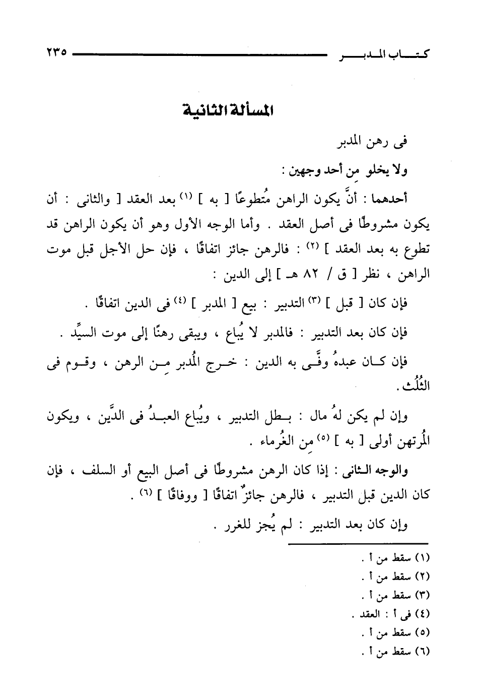 والوجه الثاني: إذا كان الرهن مشروطًا في أصل البيع أو السلف، فإن كان الدين قبل التدبير، فالرهن جائزٌ اتفاقًا [ووفاقًا] (¬6).