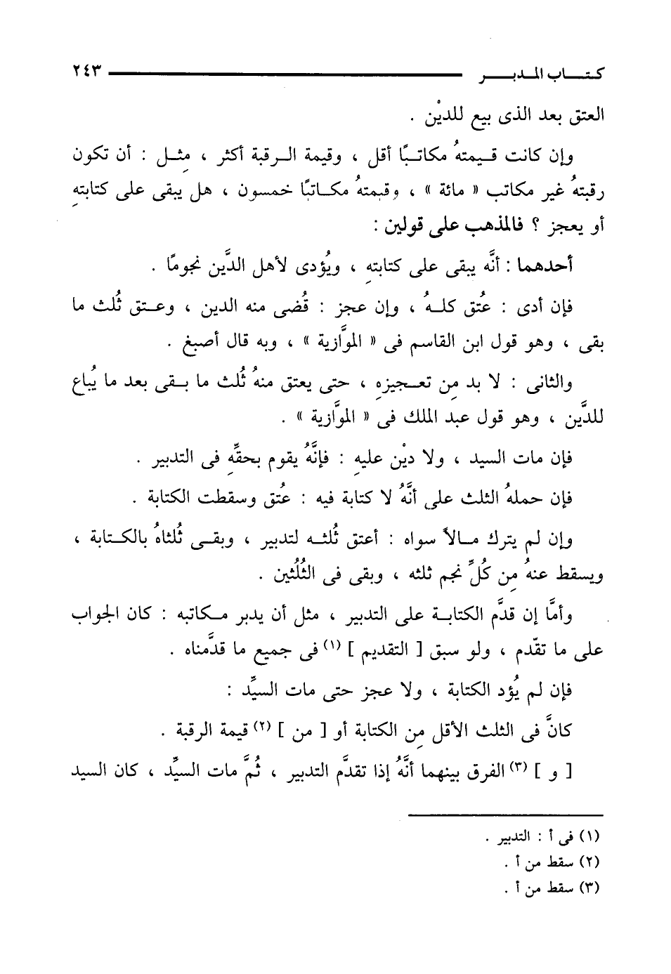وأمَّا إن قدَّم الكتابة على التدبير، مثل أن يدبر مكاتبه: كان الجواب على ما تقدم، ولو سبق [التقديم] (¬1) في جميع ما قدَّمناه.