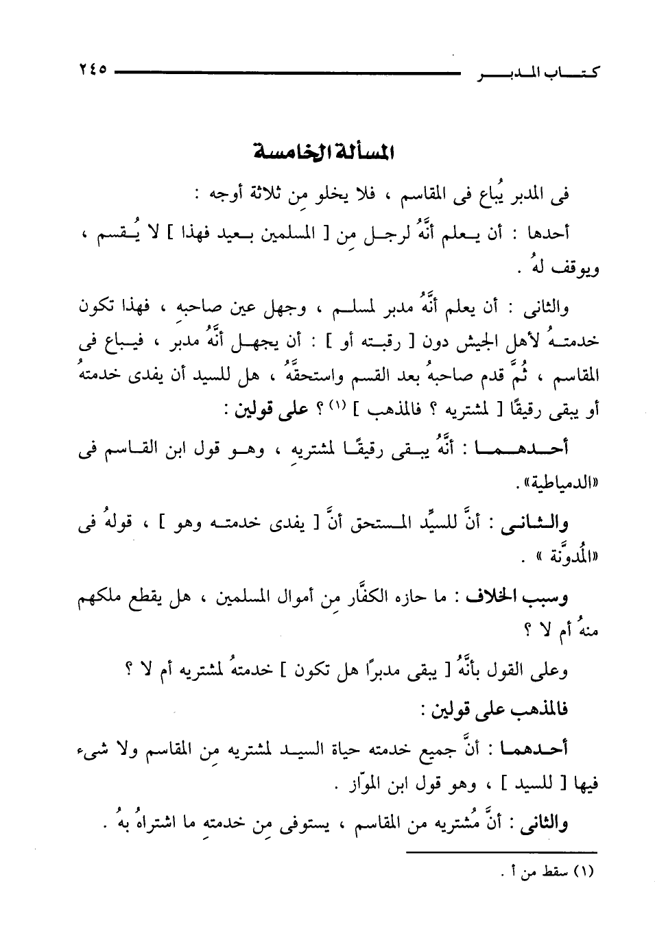 المسألة الخامسة