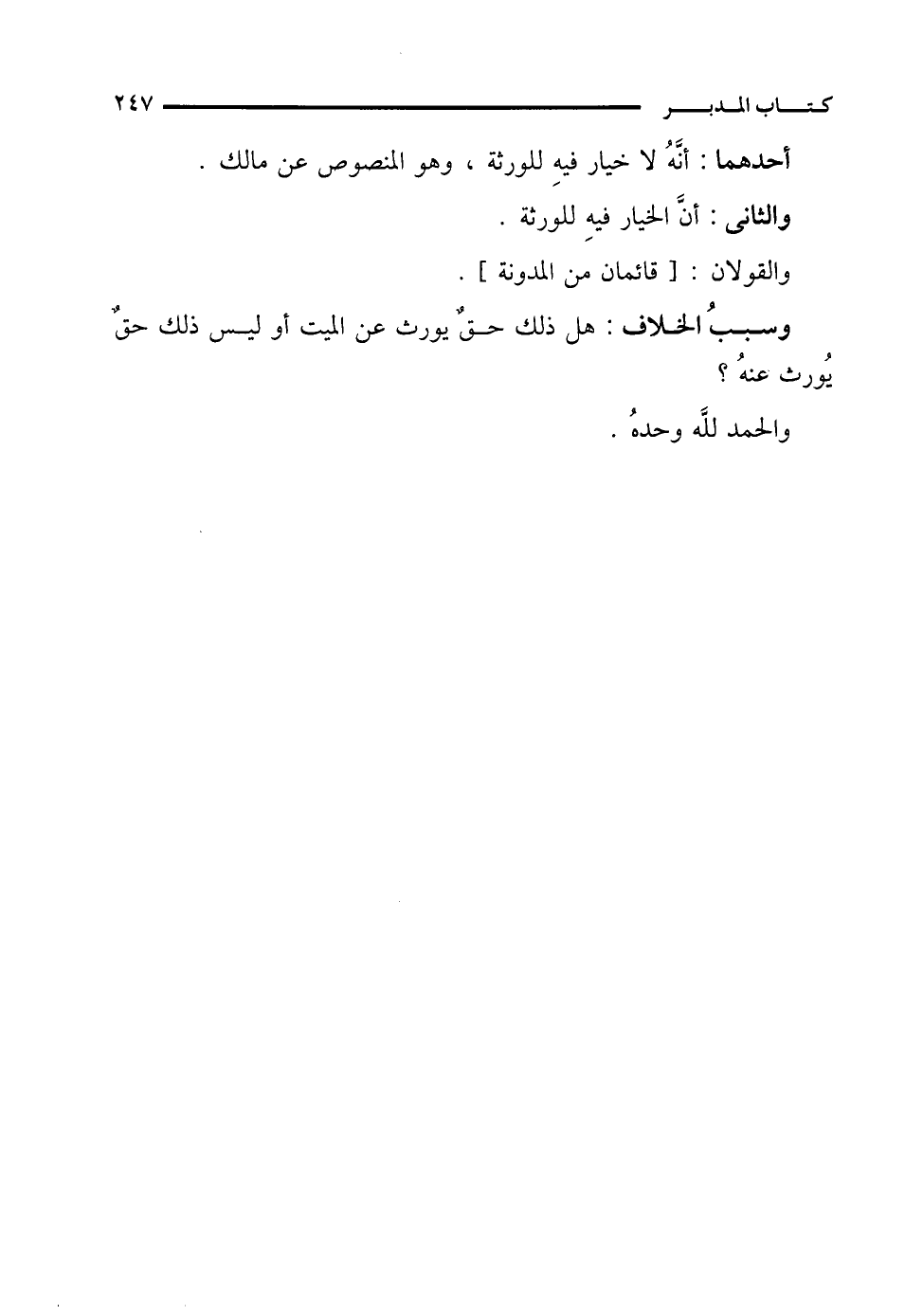 وسببُ الخلاف: هل ذلك حقٌ يورث عن الميت أو ليس ذلك حقٌ يُورثْ عنهُ؟
