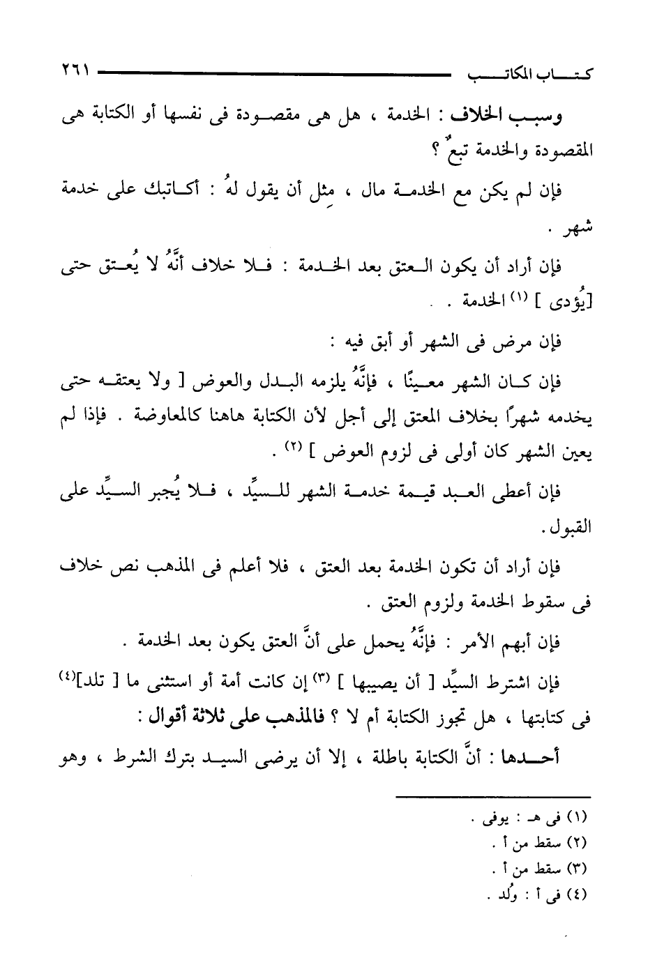 وسبب الخلاف: الخدمة، هل هى مقصودة في نفسها أو الكتابة هى المقصودة والخدمة تبعٌ؟