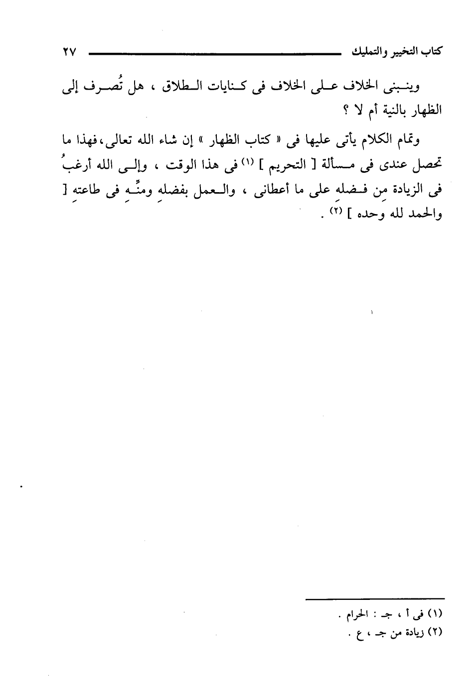 وتمام الكلام يأتى عليها في "كتاب الظهار" إن شاء الله تعالى، فهذا ما تحصل عندي في مسألة [التحريم] (¬1) في هذا الوقت، وإلى الله أرغبُ في الزيادة مِن فضله على ما أعطانى، والعمل بفضله ومنِّهِ في طاعته [والحمد لله وحده] (¬2).