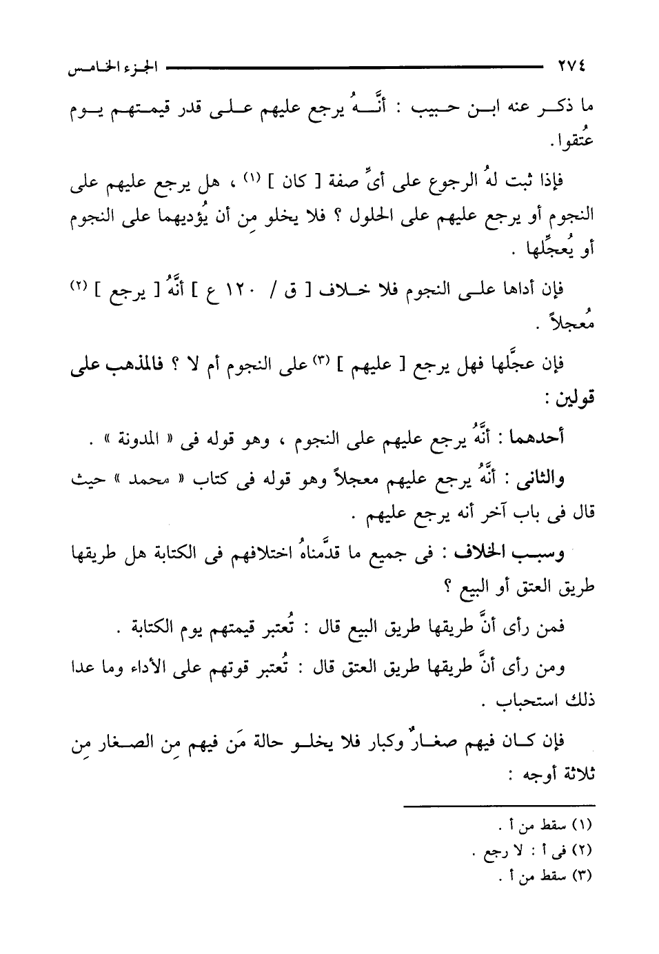 فإذا ثبت لهُ الرجوع على أي صفة [كان] (¬1)، هل يرجع عليهم على النجوم أو يرجع عليهم على الحلول؟ فلا يخلو مِن أن يُؤديهما على النجوم أو يُعجِّلها.