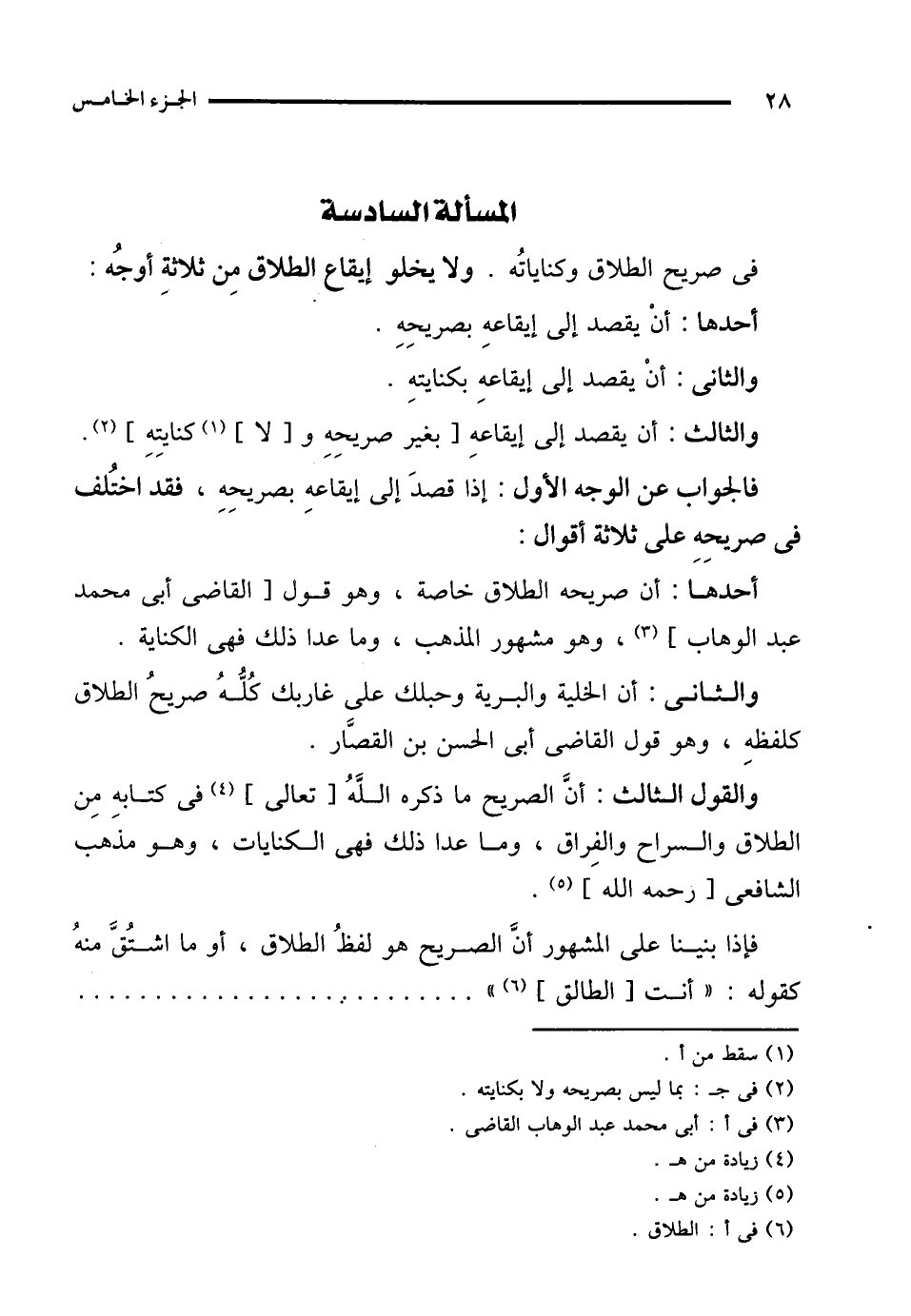 المسألة السادسة