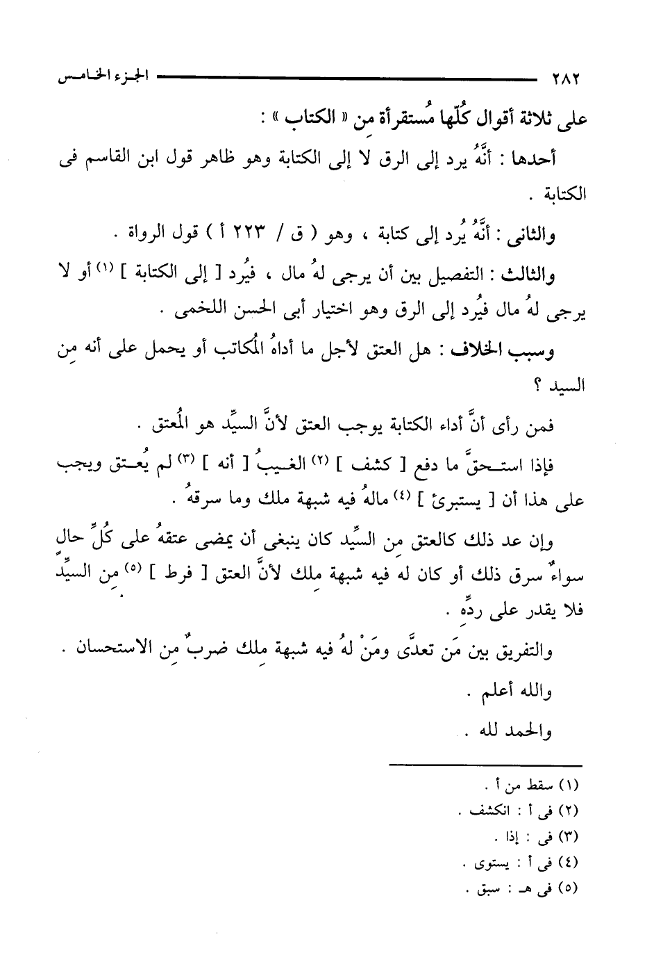 والثانى: أنَّهُ يُرد إلى كتابة، وهو قول الرواة.