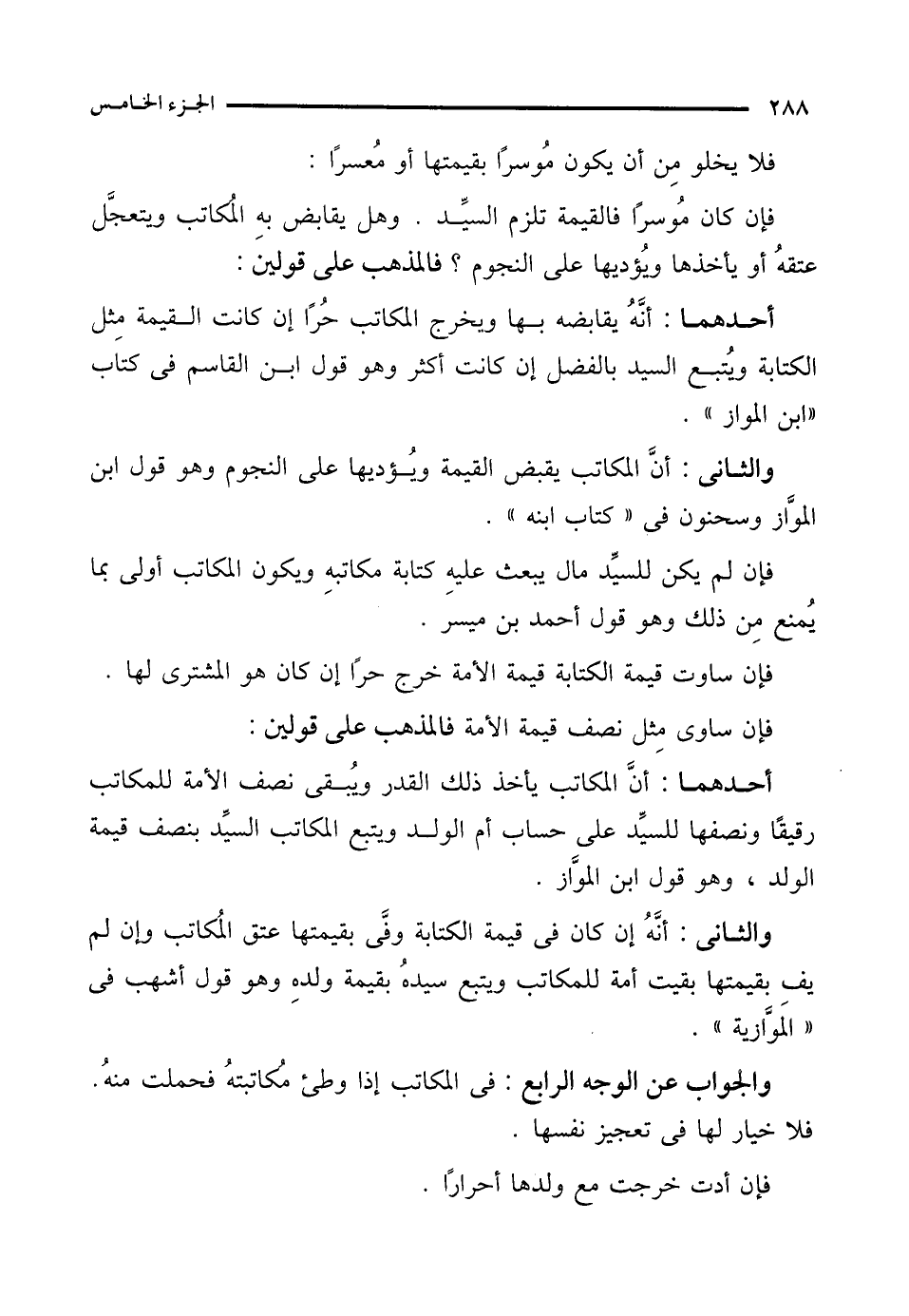 فإن لم يكن للسيِّد مال يبعث عليهِ كتابة مكاتبهِ ويكون المكاتب أولى بما يُمنع مِن ذلك وهو قول أحمد بن ميسر.
