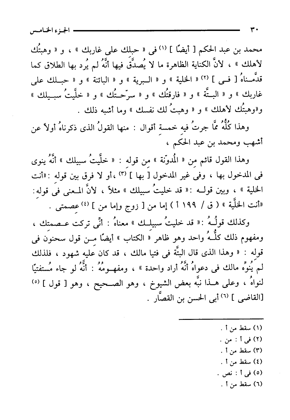 وهذا كُلُّهُ ممَّا جرتُ فيه خمسة أقوال: منها القولُ الذي ذكرناهُ أولًا عن أشهب ومحمد بن عبد الحكم.