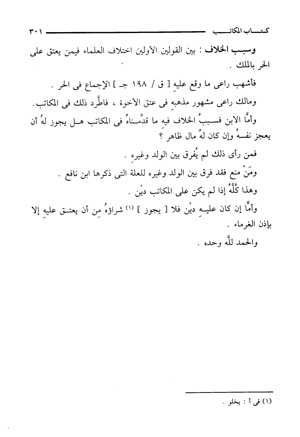 وأمَّا الابن فسببُ الخلاف فيه ما قدَّمناهُ في المكاتب هل يجوز لهُ أن يعجز نفسهُ وإن كان لهُ مال ظاهر؟