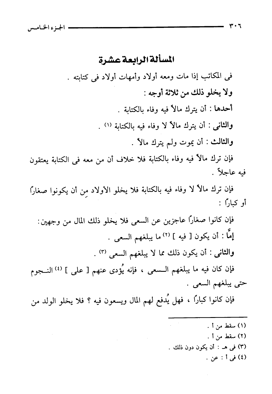فإن ترك مالًا لا وفاء فيه بالكتابة فلا يخلو الأولاد مِن أن يكونوا صغارًا أو كبارًا: