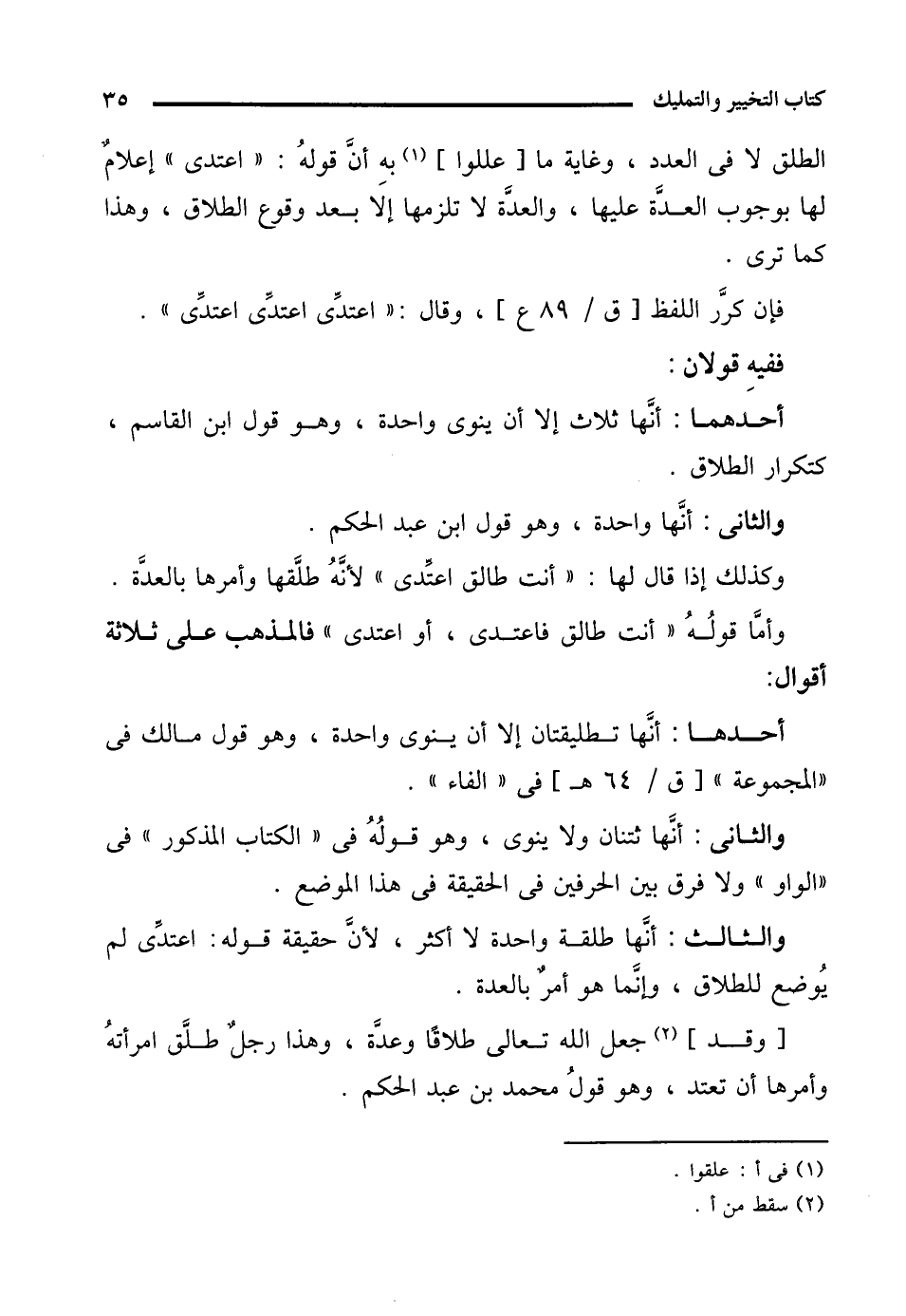 والثانى: أنَّها واحدة، وهو قول ابن عبد الحكم.