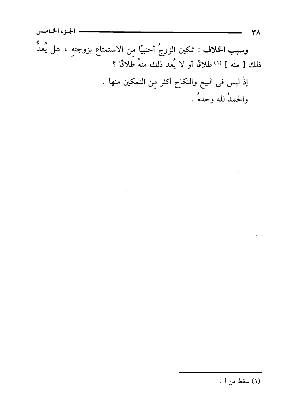 وسبب الخلاف: تمكين الزوجُ أجنبيًا مِن الاستمتاع بزوجتهِ، هل يُعدُّ ذلك [منه] (¬1) طلاقًا أو لا يُعد ذلك منهُ طلاقًا؟