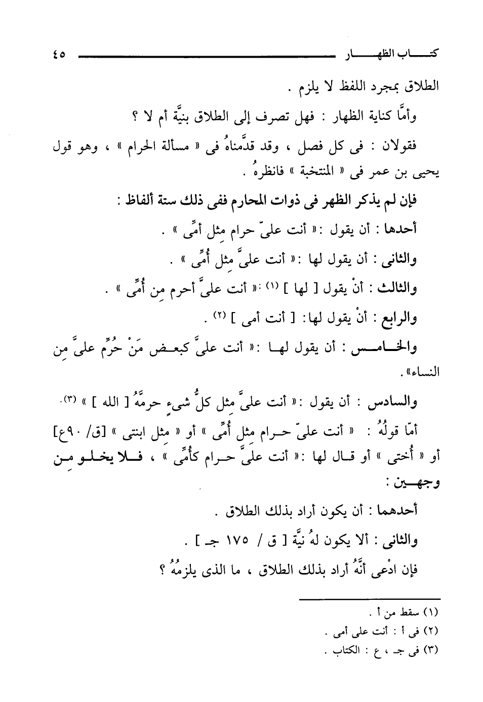 أحدها: أن يقول: "أنت علىّ حرام مِثل أمِّى".