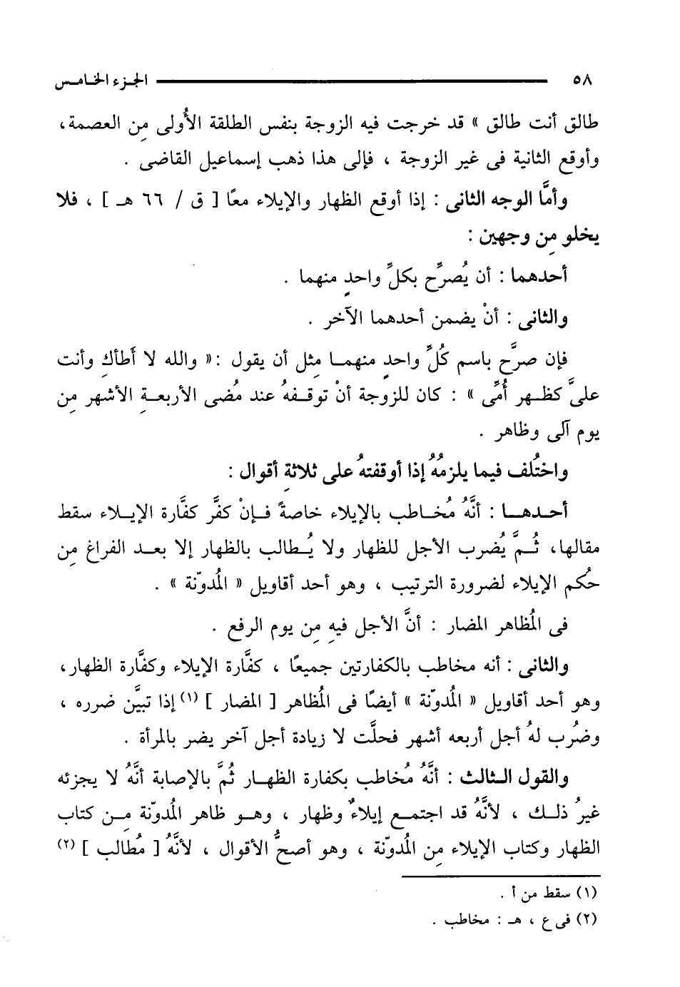 وأمَّا الوجه الثاني: إذا أوقع الظهار والإيلاء معًا، فلا يخلو مِن وجهين: