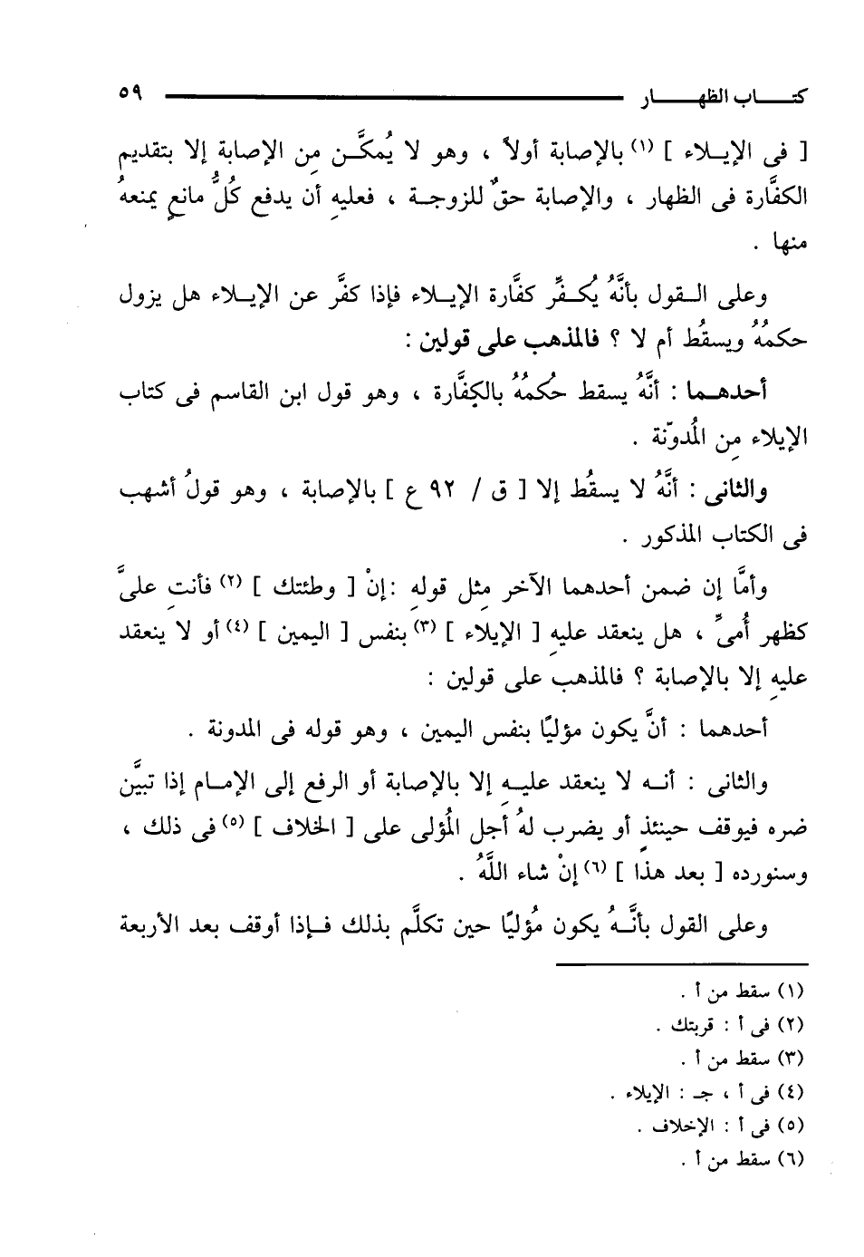 والثانى: أنه لا ينعقد عليه إلا بالإصابة أو الرفع إلى الإِمام إذا تبيَّن ضره فيوقف حينئذٍ أو يضرب لهُ أَجل المُؤلى على [الخلاف] (¬5) في ذلك، وسنورده [بعد هذا] (¬6) إنْ شاء اللهُ.