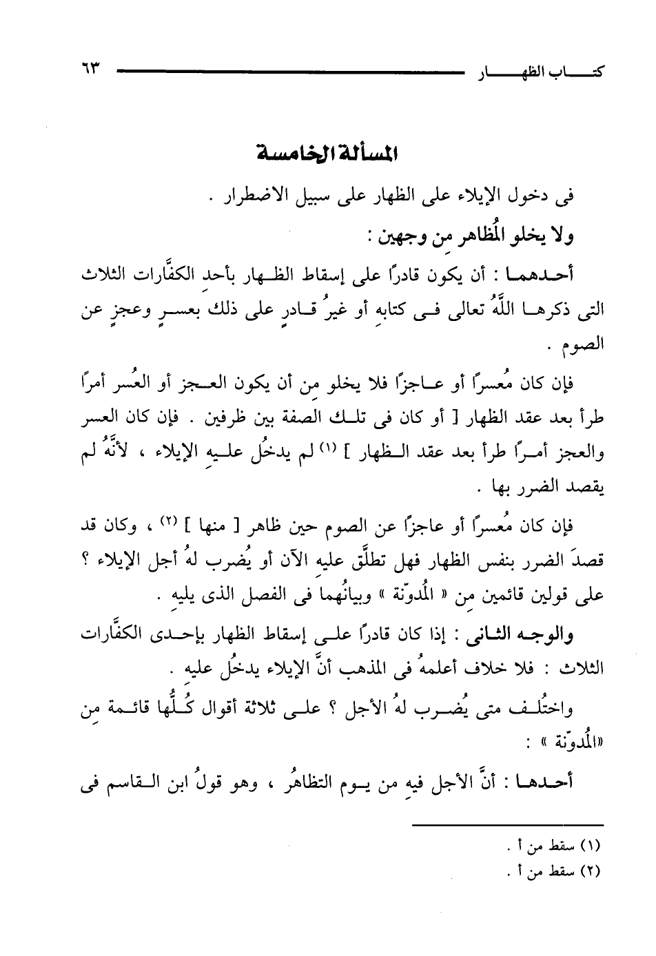 المسألة الخامسة