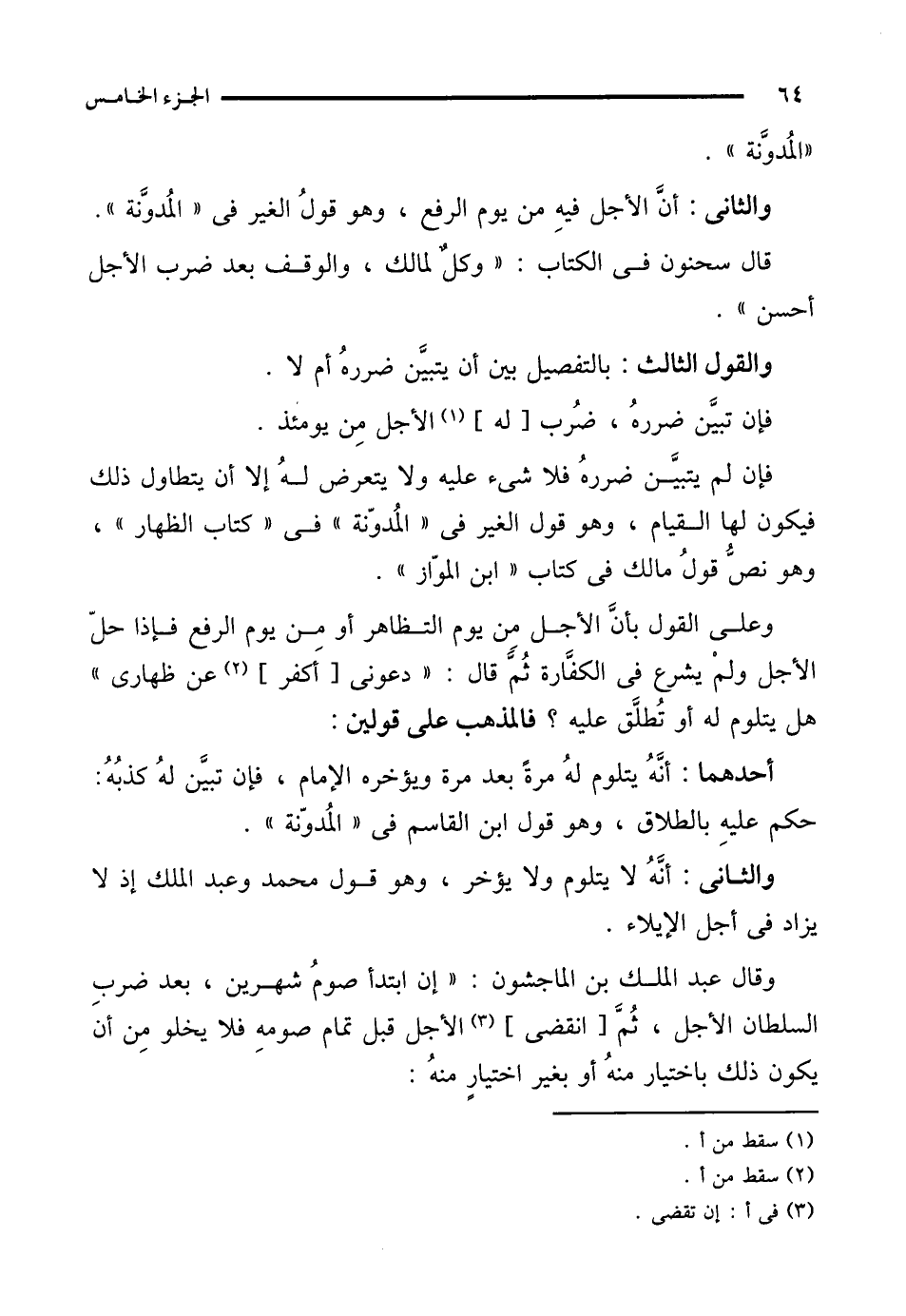 قال سحنون في الكتاب: "وكلٌ لمالك، والوقف بعد ضرب الأجل أحسن".