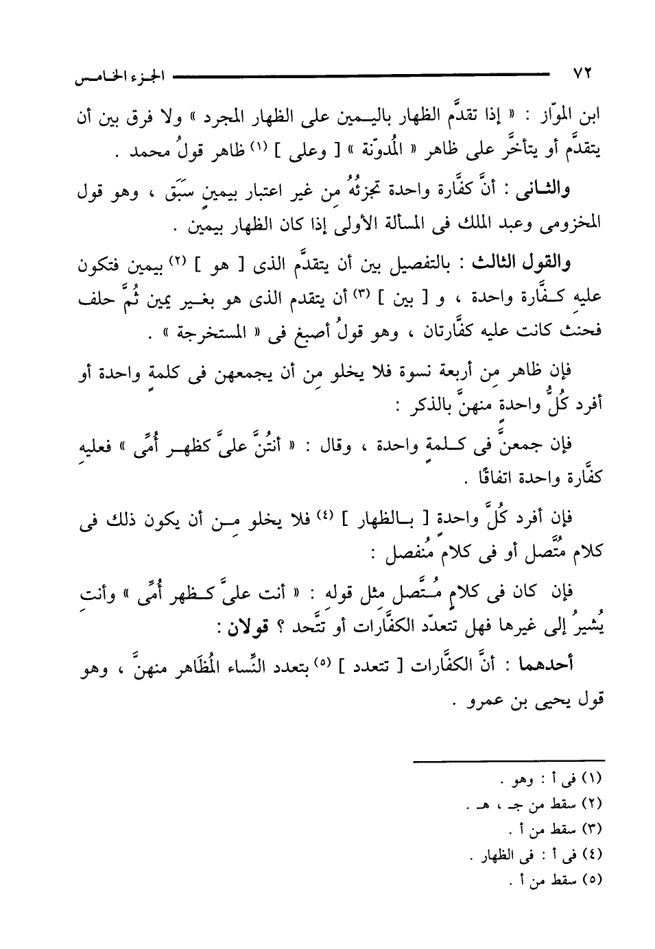 أحدهما: أنَّ الكفَّارات [تتعدد] (¬5) بتعدد النِّساء المُظَاهر منهنَّ، وهو قول يحيى بن عمرو.